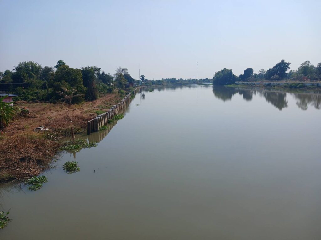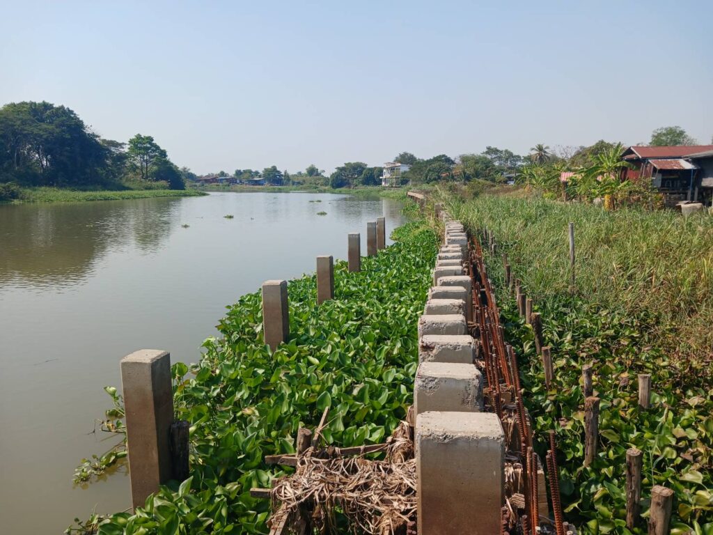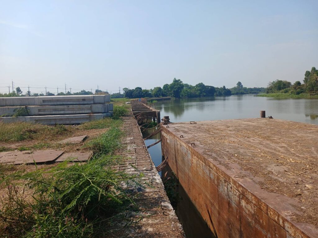โครงการดังกล่าวเป็นการก่อสร้างเขื่อนป้องกันตลิ่งจำนวน 2 แห่ง บริเวณหน้าวัดบางเตย และหน้าวัดบางกระเบา ดำเนินการโดยกรมโยธาธิการและผังเมือง สภาพหน้างานมีเพียงเสาเข็มตอกทิ้งไว้ ไม่พบคนงานก่อสร้าง ความก้าวหน้าการก่อสร้างเพียงประมาณ 35% และ 65% ตามลำดับ